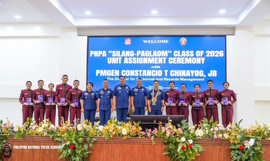 The Philippine National Police Academy (PNPA) held the Unit Assignment Ceremony, also known as Unit Selection Night, for the 326 graduating members of the PNPA “SILANG-PAGLAOM” Class of 2026 on March 25, 2026, at the PNPA Fidel V Ramos Hall, Camp General Mariano N Castañeda, Silang, Cavite. The event was graced by PMGEN CONSTANCIO T CHINAYOG, JR, Director for Personnel and Records Management of the Philippine National Police (PNP), who served as the Guest of Honor and Speaker.